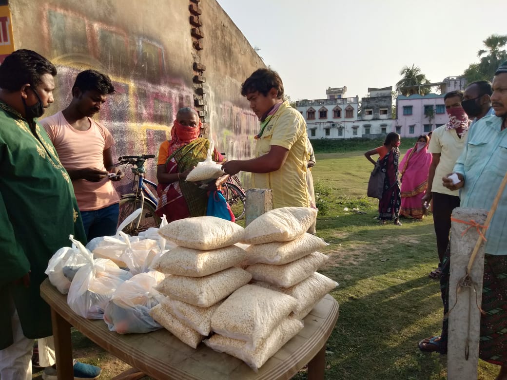 স্টাফ রিপোর্টার, মেমারিঃ লকডাউ পরিস্থিতিতে মেমারি শহর যেমন স্বেচ্ছাসেবীদের মানবিক রুপ দেখছেন ঠিক তেমনই রাজনৈতিক নেতৃত্ত্বের। ওয়ার্ডে ওয়ার্ডে দরিদ্র মানুষের পাশে দাঁড়াচ্ছেন তৃণমূল নেতারা। আজ ৫নং ওয়ার্ড অফিসের উদ্দ্যোগে প্রায় ২০০ গরীব মানুষদের মুড়ি ও শাকসব্জী তুলে দিলেন তৃণমূলনেতা সেখ মইদুল ইসলাম, সেখ তাহের আলি, ভ্রমর রায়, মুজিবর সেখ ও অন্যান্য তৃণমূল কর্মীবৃন্দ। প্রসঙ্গত উল্লেখ্য লকডাউনের প্রথম সপ্তাহে তারা চাল ও আলু তুলে দিয়েছিল ২০০ জন অসহায় মানুষদের হাতে।