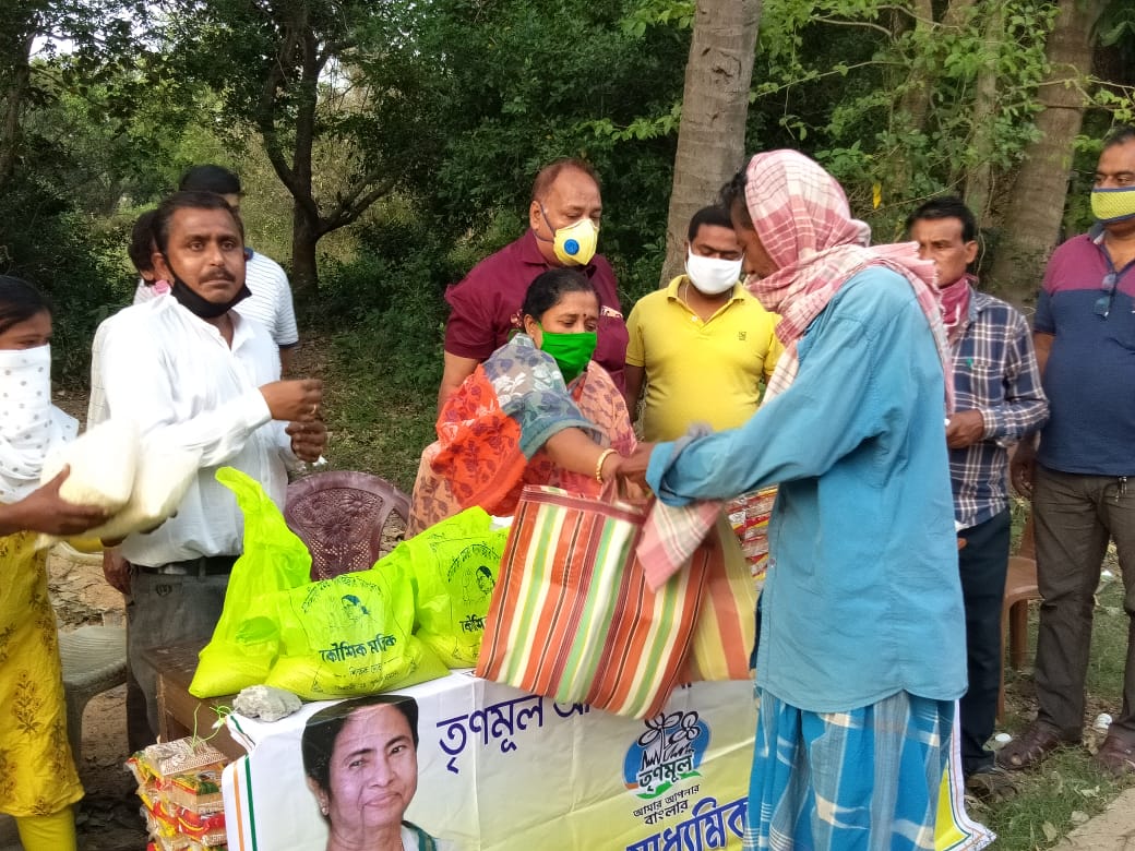 স্টাফ রিপোর্টারঃ লকডাউন পরিস্থিতিতে দরিদ্র মানুষের কপালে মধ্যে এক অনিশ্চিত ভবিষতের অদৃশ্য চিন্তারেখা দেখা যাচ্ছে, ঠিক যেমন একদিকে আমরা সকলে মিলে অদৃশ্য করোনা ভাইরাসের বিরুদ্ধে লড়াই করছি। এমতাবস্থায় রাজ্যের মুখ্যমন্ত্রী মমতা বন্দোপাধ্যায় যেমন দিনরাত পরিশ্রম করে জনগণের পাশে আছেন ঠিক তেমনই মেমারিবাসীর পাশে আছেন মেমারি পৌরসভার উপ-পৌরপ্রধান সুপ্রিয় সামন্তর নেতৃ্ত্বাধীন তৃণমূল কার্যকর্তারা। গত ৮ এপ্রিল মেমারি ১ ও ২ ব্লক তৃণমূল মাধ্যমিক শিক্ষক সমিতির সভাপতি কৌশিক মল্লিকের উদ্যোগে দ্বিতীয়বারের মত মেমারি পৌরসভার ৯ নং ওয়ার্ডে দরিদ্র মানুষদের খাদ্যসামগ্রী প্রদান করেন। উক্ত ত্রানকার্যে উপস্থিত ছিলেন মেমারি পৌরসভার উপ-পৌরপ্রধান সুপ্রিয় সামন্ত, ৯নং ওয়ার্ড কাউন্সিলার রূপা খাঁড়া, ছাত্রযুব নেতা মুকেশ শর্মা, মাজসেবী শুভেন্দু গুহ, অশোক কোলে প্রমুখ সদস্যবৃন্দ। আজ প্রায় ৫৫জন দরিদ্র মানুষকে ৪ কেজি করে আলু, ৩ কেজি করে চাল, বিস্কুট, সাবান , মুড়ি,ও মাস্ক দেওয়া হয়। অনুষ্ঠানের মূল উদ্দ্যোক্তা শিক্ষকনেতা কৌশিক মল্লিকের একান্ত অনুরোধে উপস্থিত সাংবাদিকরা কিছু খাদ্যসামগ্রীর প্যাকেট অসহায় মানুষদের হাতে তুলে দেন।
