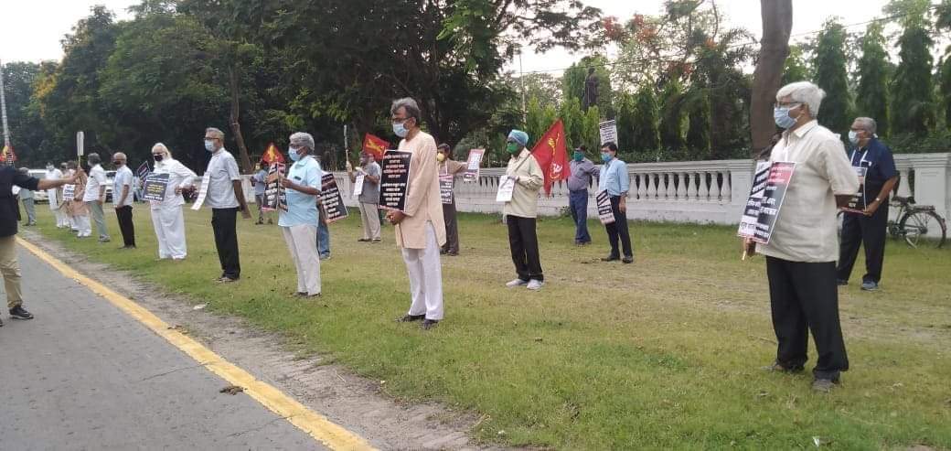 এদিন রেড রোডে বিক্ষোভ কর্মসূচিতে ছিলেন বামফ্রন্ট সম্পাদক বিমান বসু, সিপিএমের রাজ্য সম্পাদক সূর্যকান্ত মিশ্র, প্রাক্তন সাংসদ মহম্মদ সেলিম, বাম পরিষদীয় নেতা সূজন চক্রবর্তী-সহ একাধিক নেতা-কর্মী। স্বাস্থ্যবিধি অনুযায়ী, দূরত্ব বজায় রেখে তাঁরা প্ল্যাকার্ড হাতে নিয়ে দাঁড়িয়ে ছিলেন। তাঁদের অভিযোগ, লকডাউনের জেরে গরিব-দুস্থ মানুষের ঠিকভাবে ত্রাণ পৌঁছচ্ছে না, রেশন নিয়ে দুর্নীতি হচ্ছে, এমনকী লকডাউন সঠিক ভাবে পালন হচ্ছে না সর্বত্র। কেন্দ্র ও রাজ্য সরকার উভয়ের বিরুদ্ধেই অভিযোগে এই প্রতিবাদ কর্মসূচির আয়োজন করে বামফ্রন্ট। রাজ্যে করোনার টেস্ট ঠিকঠাকভাবে হচ্ছে না বলেও তাঁরা অভিযোগ করেছেন তাঁরা। এই প্রেক্ষিতে কলকাতা হাই কোর্টে দুটি মামলাও দায়ের করেছেন ফুয়াদ হালিম, বিকাশরঞ্জন ভট্টাচার্যের মতো সিপিএম নেতারা। রাজ্যের মুখ্যমন্ত্রীর সঙ্গে দুবার বৈঠক করেছেন বাম নেতারা। তা সত্ত্বেও অভিযোগ, রাজ্য সরকার তাঁদের দাবি মতো পদক্ষেপ করছে না। তাই এদিন বিক্ষোভ দেখান তাঁরা।