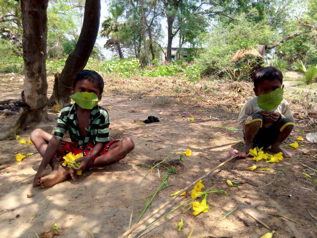 তাই করোনাযুদ্ধে দেশের আপামর জনতা যে লকডাউনের নিয়মকে হাল্কা করে যে নিচ্ছেন না তার প্রমাণ মিলল রাজ্যের বীরভূমের দুবরাজপুর ব্লকের “মাজুরিয়া” একটি আদিবাসী প্রধান গ্রাম। বনের ধারে এই গ্রামের একশো শতাংশ দিন আনি দিন খাওয়া শ্রেণীর মানুষের বাস। শিক্ষার আলো তেমনভাবে পৌঁছায়নি এইসব মানুষজনদের কাছে। করোনা ভাইরাসের মোকাবিলায় অতশত বিজ্ঞানও তাঁদের জানা নেই। তবু তাঁরা মুখ ঢেকেছে গাছের পাতায়। শিশুরাও মাস্কের পরিবর্তে পাতা দিয়ে মুখ ঢেকে খেলা করছে। মেয়েরাও মুখ ঢেকেছে করোনার ভয়ে। করোনা যুদ্ধ মোকাবিলায় এরাও যেন এক একটা সৈনিক ।