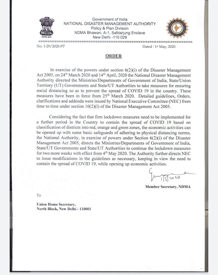 বিশেষ সংবাদঃ দেশে করোনার ভাইরাসের সংকট প্রতিনিয়ত বাড়ছে।সেদিকে লক্ষ রেখে করোনার সঙ্কট মোকাবিলার জন্য লকডাউনের সময়সীমা দুই সপ্তাহের জন্য বাড়ানো হল কেন্দ্রসরকার থেকে।১৭ মে দেশে লকডাউন বাড়ানোর সিদ্ধান্ত নিল কেন্দ্রীয় স্বরাষ্ট্রমন্ত্রক এক নির্দেশিকা জারির মাধ্যমে।