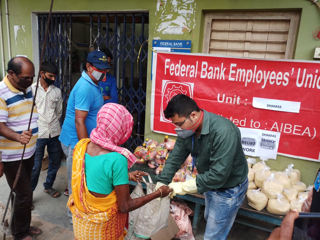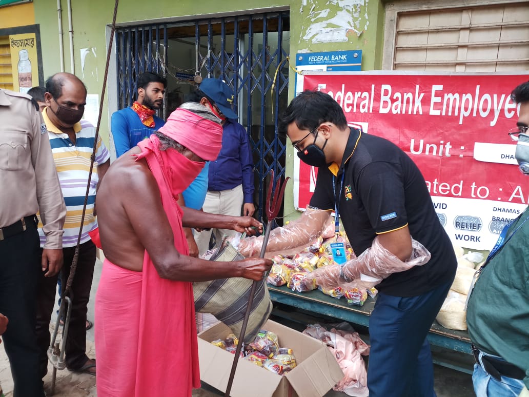 গত ২ মে পূর্ব বর্ধমান জেলার গ্রাম দেবীপুরের ছোট ধামাসে ফেডারেল ব্যাঙ্কের ধামাস শাখা ও কর্মী ইউনিয়ন বর্তমান পরিস্থিতির কথা ভেবে গ্রামের  দুঃস্থ ১০০ টি পরিবারকে খাদ্য সামগ্রী প্রদান করলেন।