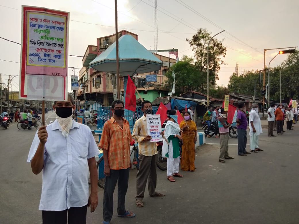 মূলত পরীযায়ী শ্রমিকদের ঘরে ফেরানোর বিভিন্ন দাবী ও করোনা পরিস্থিতির মোকাবিলায় রাজ্যের ব্যর্থতার পোষ্টার নিয়ে সামাজিক দূরত্ব রেখে এই প্রতিবাদ কর্মসূচী পালন করা হয়।