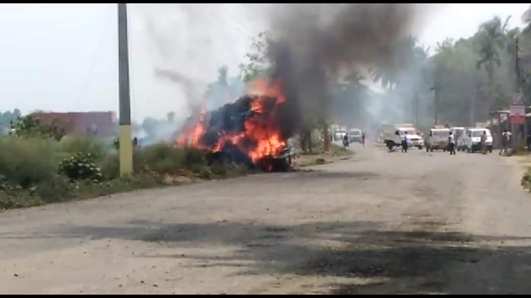 বিশেষ প্রতিনিধিঃ পূর্ব বর্ধমানের নাদনঘাট থানার সমুদ্রগড় পঞ্চায়েতের নীচু চাঁপাহাটি এলাকায় এসটিকেকে রোডে আজ দুপুরে একটি খড় বোঝাই লরি আগুনে ভস্মীভূত হয়ে যায়। প্রত্যক্ষদর্শীরা জানিয়েছেন, খড়ের পরিমাণ বেশি থাকায় রাস্তার উপর দিয়ে যাওয়া বিদ্যুৎ-এর তারের সংস্পর্শে আসায় লরীটিতে আগুন ধরে যায়। দমকলের একটি ইঞ্জিন আধঘন্টার চেষ্টায় আগুন নিয়ন্ত্রণে আনে।