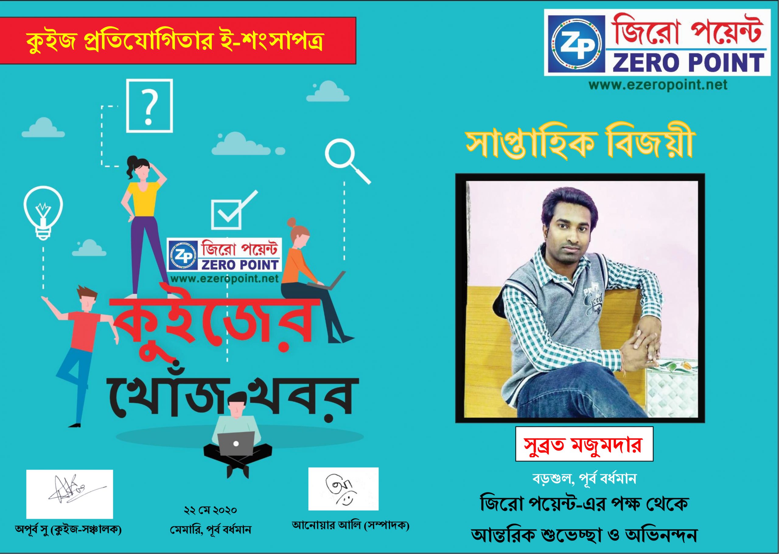 সকল অংশগ্রহণকারীকে জিরো পয়েন্ট-এর পক্ষ থেকে অভিনন্দন ও আন্তরিক শুভেচ্ছা। পেজটি আপনার টাইমলাইনে শেয়ার করুন ও আমাদের ফেসবুক পেজ Zero Point- জিরো পয়েন্ট লাইক করুন।