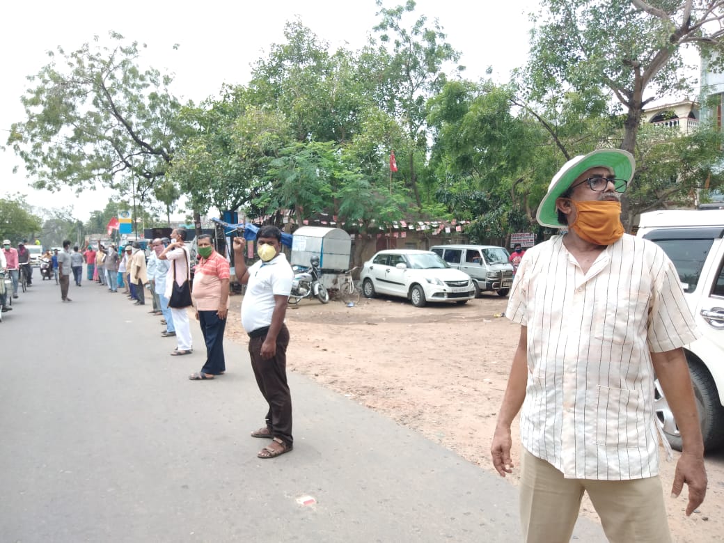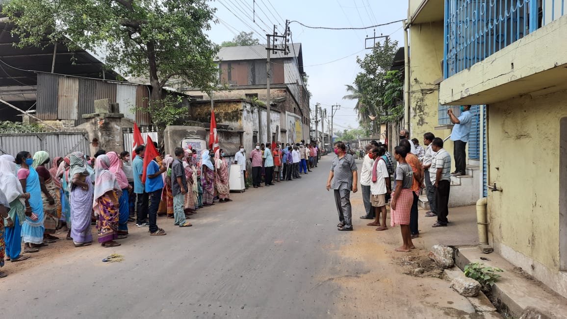 সিটুর সুবর্ণ জয়ন্তী প্রতিষ্ঠা উপলক্ষ্যে চকদিঘী রোডে মানব বন্ধনে দাঁড়িয়েছিলেন, কিন্তু লকডাউনের বিধি মেনে পার্টীকর্মীরা হাত না ধরে মানব বন্ধনের কর্মসূচী পালন করেন।