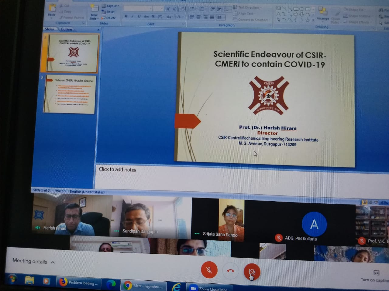 দুর্গাপুরের সিএসআইআর – সিএমইআরআই-এর অধিকর্তা অধ্যাপক (ডঃ) হিরানী জানিয়েছেন, তাদের প্রতিষ্ঠান স্বল্পমূল্যের ত্রিস্তরীয় ফেসমাস্ক, রাস্তাকে জীবাণুমুক্ত করার জন্য বিশেষ ট্র্যাক্টর, মেকানিক্যাল ভেন্টিলেটর, স্পর্শ না করে সাবান জলের ব্যবহারের ব্যবস্থাপনা, হাসপাতালে সাহায্যকারী রোবট, সৌরশক্তিচালিত ইন্টেলিমাস্ট, ৩৬০ ডিগ্রী ঘুরতে পারে এরকম যন্ত্রের মাধ্যমে গাড়ি পরিস্কার ব্যবস্থাপনা, জুতোকে সংক্রমণ মুক্ত করার জন্য বিশেষ ধরণের ব্যবস্থাপনা, যান্ত্রিকভাবে নর্দমা পরিস্কারের ব্যবস্থাপনা উদ্ভাবন করেছে। এগুলির সাহায্যে সংক্রমণ শৃঙ্খল ভাঙ্গা যাবে।