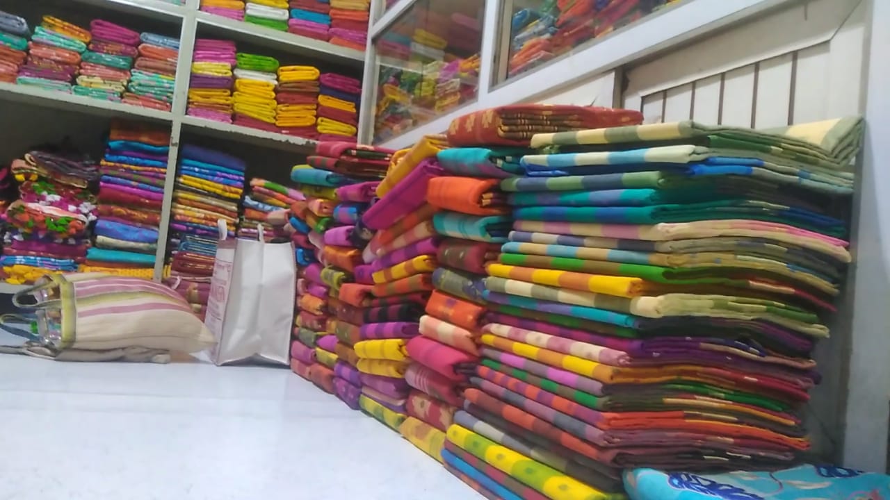 সারা রাজ্য জুড়ে মহাজন’ ও ক্রেতাদের ভিড় হয় এই তাঁত কাপড় হাটে, কিন্তু এবার হাটে নেই কোন কোলাহল।