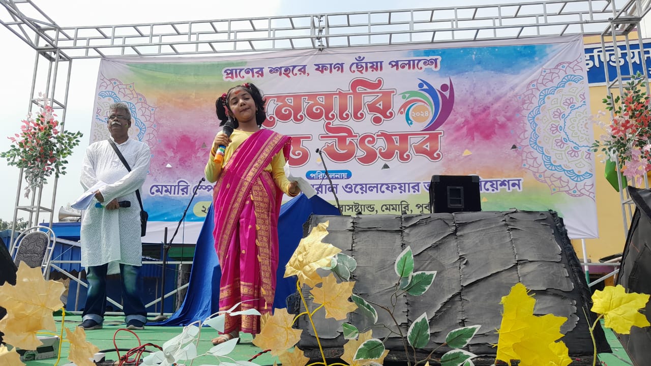 রংবেরঙের আবির ছাড়া কি আর বসন্ত উৎসব মানায়, তাই তাই এই অনুষ্ঠানে অংশগ্রহণকারী ছোট বড় সকলেই রংবেরঙের আবিরে একে অপরকে দিলেন রাঙিয়ে, একদিকে নৃত্য গান আবৃত্তি সহ বিভিন্ন সাংস্কৃতিক অনুষ্ঠান অপরদিকে একে অন্যকে আবিরে রাঙিয়ে দেওয়ার ছবি, যেন মেমারির নতুন বাসস্ট্যান্ডের বুকে উঠে এলো এক টুকরো শান্তিনিকেতন। সমগ্র অনুষ্ঠানটি সঞ্চালনা করেন বিশিষ্ট বাচিক শিল্পী ব্রততী ঘোষ আলি ও নাট্য শিল্পী শ্যামল মজুমদার।