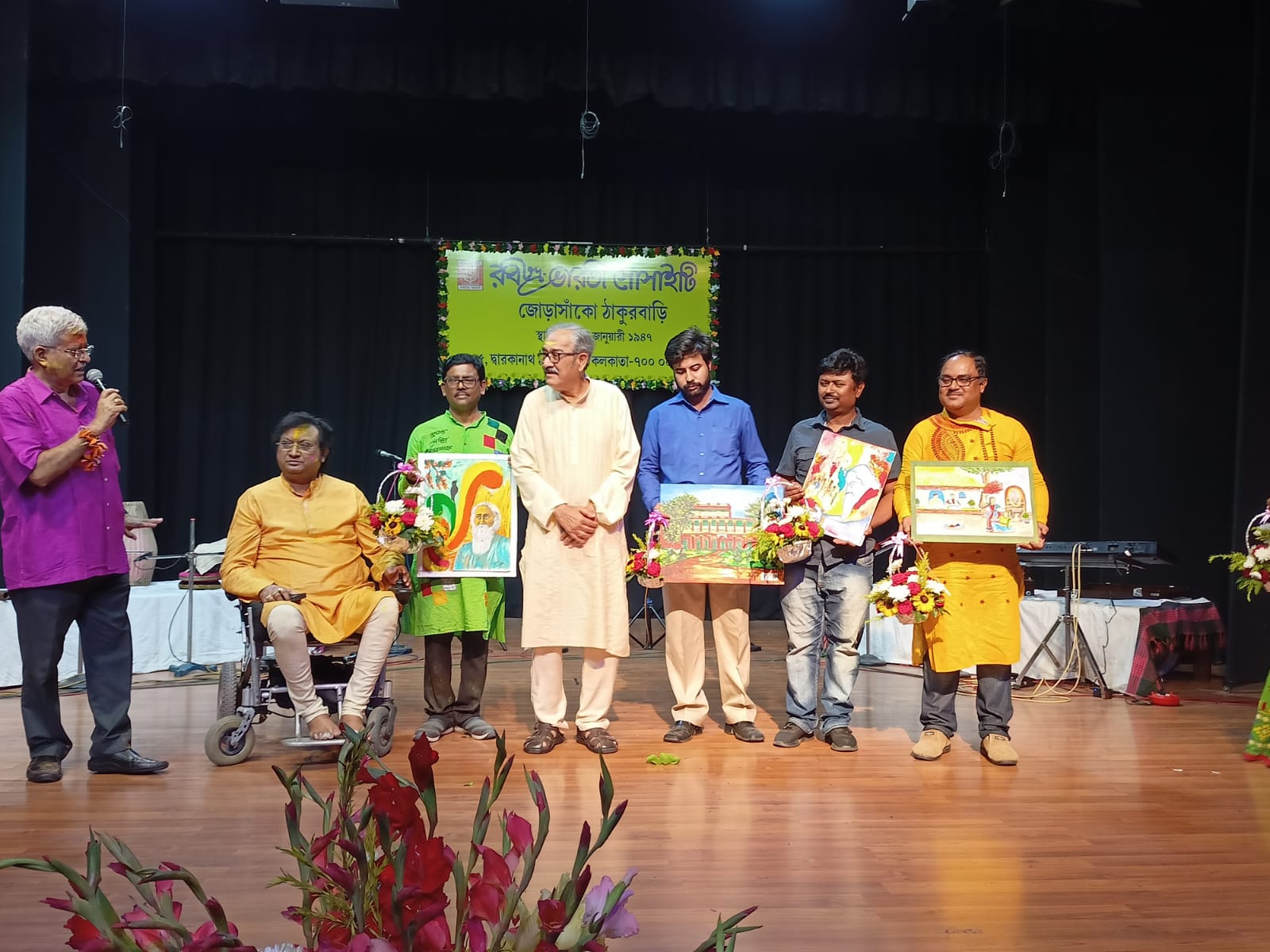 রথীন্দ্রমঞ্চে সাংস্কৃতিক অনুষ্ঠান সঞ্চালনায় ছিলেন লাইলী মুখার্জী।এই দিন চার জন প্রখ্যাত চিত্রশিল্পী দীপঙ্কর সমাদ্দার, কৌশিক মজুমদার, সুদীপ্ত ভট্টাচার্য, অমিতাভ গুপ্ত আবির ও রং দিয়ে ক্যানভাসে ফুটিয়ে তুলল বসন্ত ও রবীন্দ্রনাথ।। চিত্রশিল্পীদের ছবি ঘিরে উপস্থিত দর্শকবৃন্দের মধ্যে এক আনন্দের বন্যা বয়ে গেল। ছবির শেষে রথীন্দ্র মঞ্চে চারজন চিত্রশিল্পীকে রবীন্দ্রভারতী সোসাইটির পক্ষ থেকে সম্মানিত করা হয়।। সোসাইটির সাধারণ সম্পাদক সিদ্ধার্থ মুখোপাধ্যায় জানালেন -”বসন্ত বন্দনা অনুষ্ঠানে চিত্রশিল্পীদের এই লাইভ পেইন্টিং তাদের অনুষ্ঠানের একটা অন্য ভালোলাগা এনে দিল”
