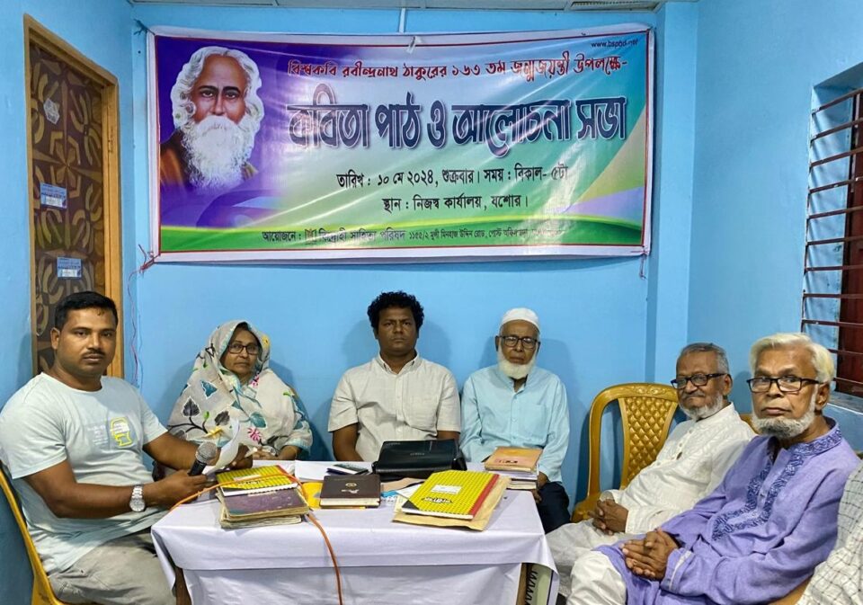 বিশ্বকবি রবীন্দ্রনাথ ঠাকুরের ১৬৩তম জন্মবার্ষিকী উপলক্ষে কবিতা পাঠ ও আলোচনা সভা বিদ্রোহী সাহিত্য পরিষদ (বিএসপি) যশোর এর কার্যালয়ে অনুষ্ঠিত হয়েছে। শুক্রবার ১০ মে বিকেল ৫টায় শহরের পোস্ট অফিস পাড়ার মুন্সী মিনহাজ উদ্দিন রোডে বিএসপি এর নিজস্ব কার্যালয়ে অনুষ্ঠিত সভায় প্রধান অতিথি হিসেবে বক্তব্য রাখেন বিশিষ্ট শিক্ষাবিদ প্রফেসর ড. মোঃ মুস্তাফিজুর রহমান।আলোচক হিসেবে বক্তব্য রাখেন বীর মুক্তিযোদ্ধা ও কলামিস্ট আমিরুল ইসলাম রন্টু, বীর মুক্তিযোদ্ধা আব্দুল খালেক, অধ্যাপক সুরাইয়া শরীফ, কবি মামুন আজাদ।