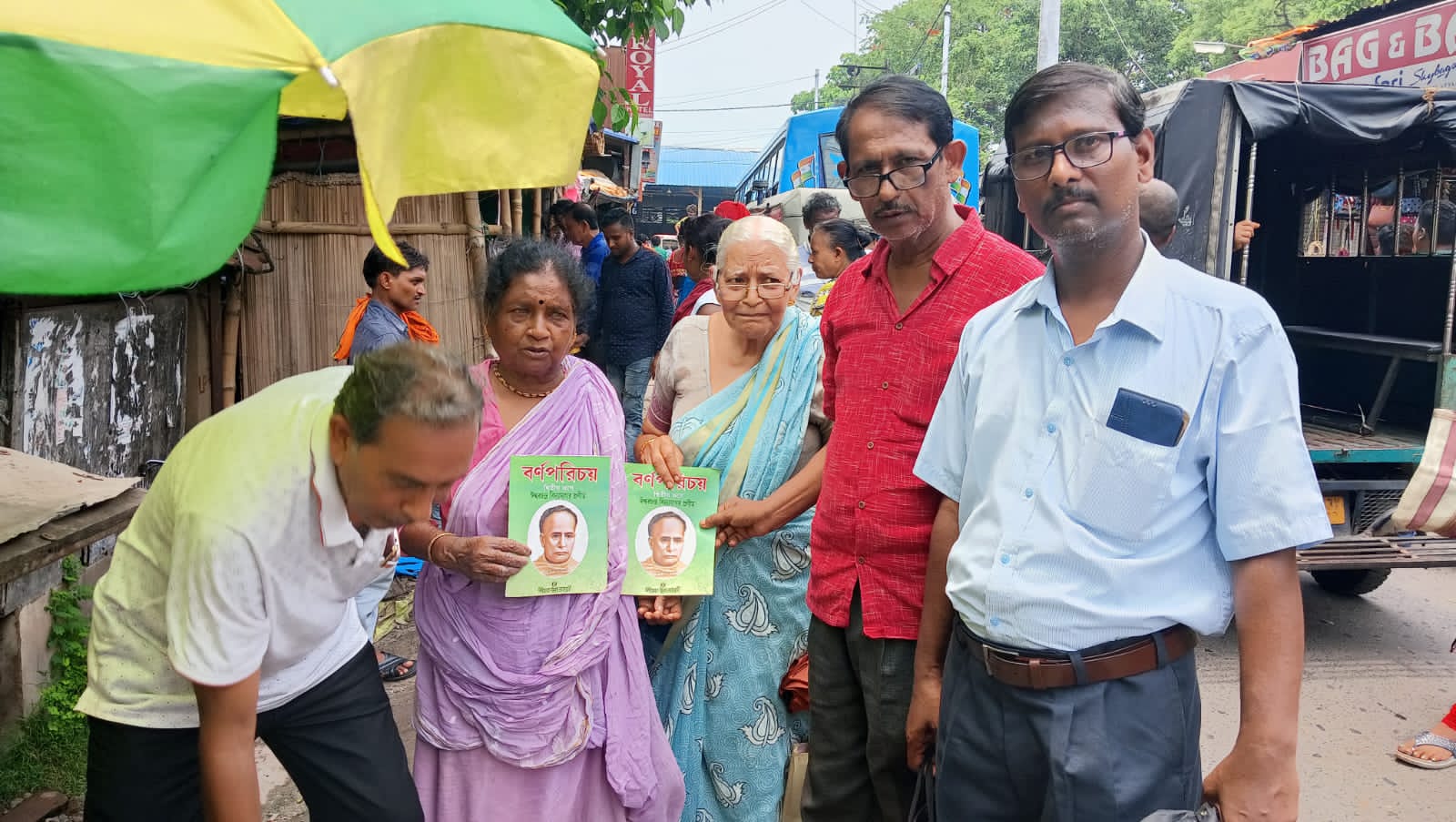‘শিক্ষা হোক সকলের’- এই বার্তা নিয়ে সংস্থার সম্পাদক চন্দ্রনাথ বসু হাওড়ার বাগনানের মাছ বিক্রেতা সনকা দেবী সহ হাওড়া-মেদিনীপুর লোকালে যাতায়াতকারী বেশ কয়েকজন প্রান্তীয় শিশুদের হাতে ‘বর্ণপরিচয়’ বইটি তুলে দেন।