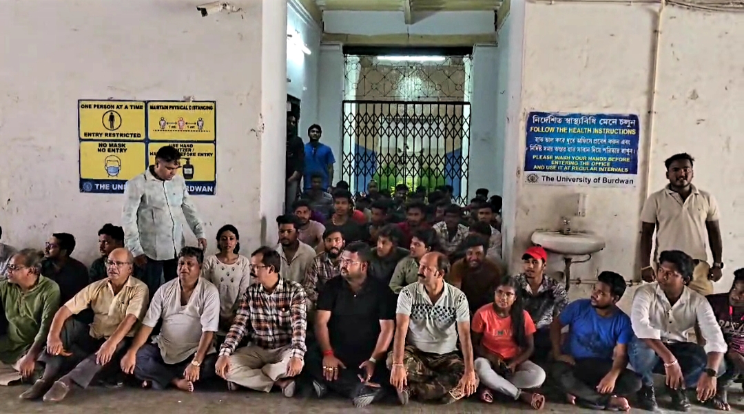 রেজিস্ট্রার সুজিত কুমার চৌধুরী নিজের অফিসে যেতে গেলে তাঁকে ঘেরাও করে বিক্ষোভ দেখানো হয়। বিক্ষোভের মুখে পরে বিশ্ববিদ্যালয় থেকে চলে যান রেজিস্ট্রার। কিছুক্ষণ পরে উপাচার্য এলে তিনিও তুমুল বিক্ষোভের মুখে পড়েন। বাধা পেয়ে ফিরে যেতে বাধ্য হন তিনি।ওয়েবকুপার ছত্রছায়ায় থাকা অধ্যাপকরা বলেন, ”রাজ্য সরকারের উচ্চ শিক্ষা দফতরের নির্দেশ অনুযায়ী এই অন্তর্বর্তিকালীন উপাচার্যের এক্সিকিউটিভ কাউন্সিলের বৈঠক ডাকার কোনও অধিকার নেই। অথচ তিনি সেই বৈঠক ডেকেছেন। আগেও তিনি এই ধরনের বৈঠক ডেকে তা বাস্তবায়িত করতে ব্যর্থ হন। আমরা গতবারের মতো এবারও এই অবৈধ বৈঠকের বিরোধিতা করেছি। আমাদের সঙ্গে তৃণমূল ছাত্র পরিষদ ও তৃণমূল কর্মচারী সংগঠনও ছিল।