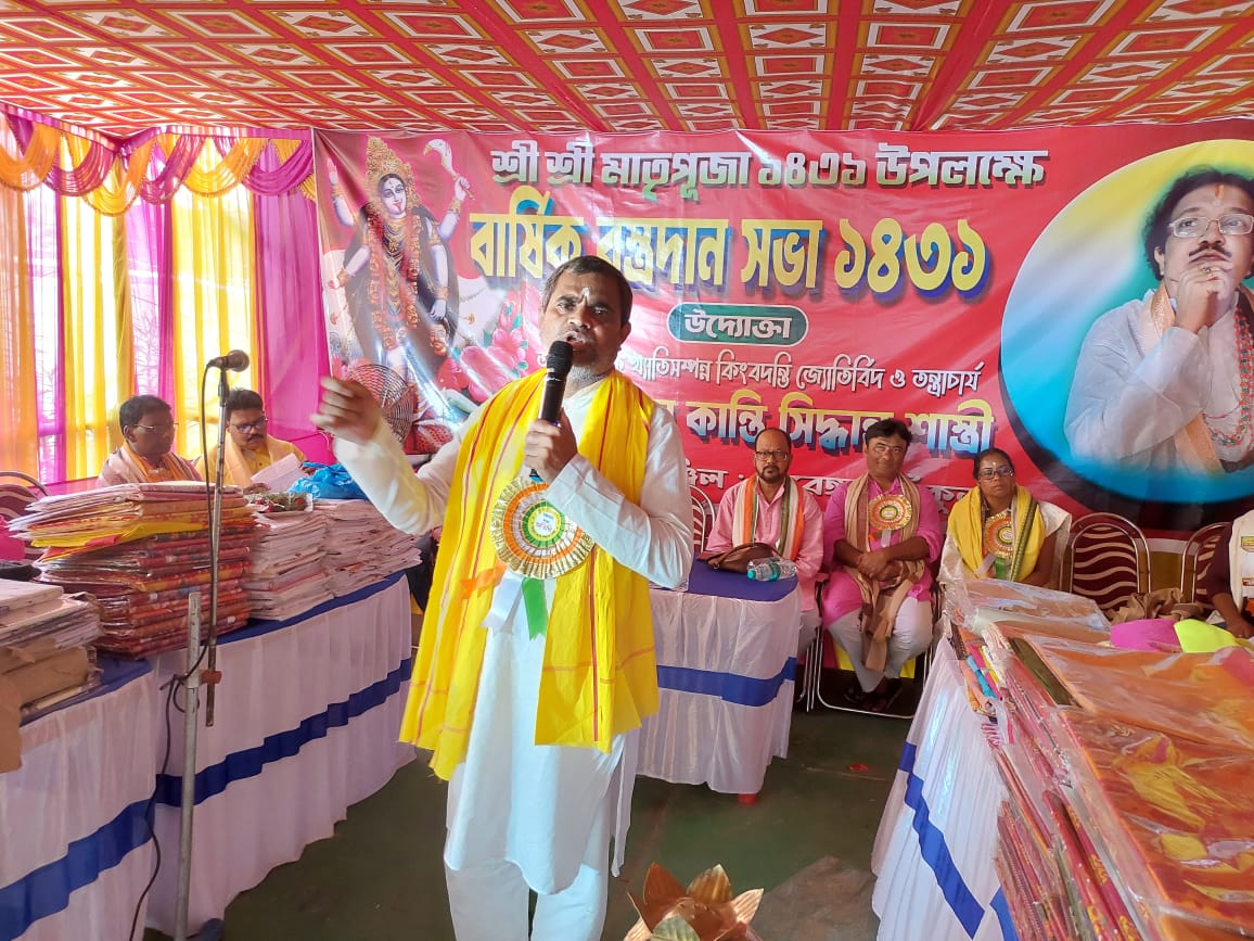 বাঁকুড়ার বন্দ্যোপাধ্যায় পরিবারের বস্ত্রদান সভা ও নরনারায়ণ সেবা