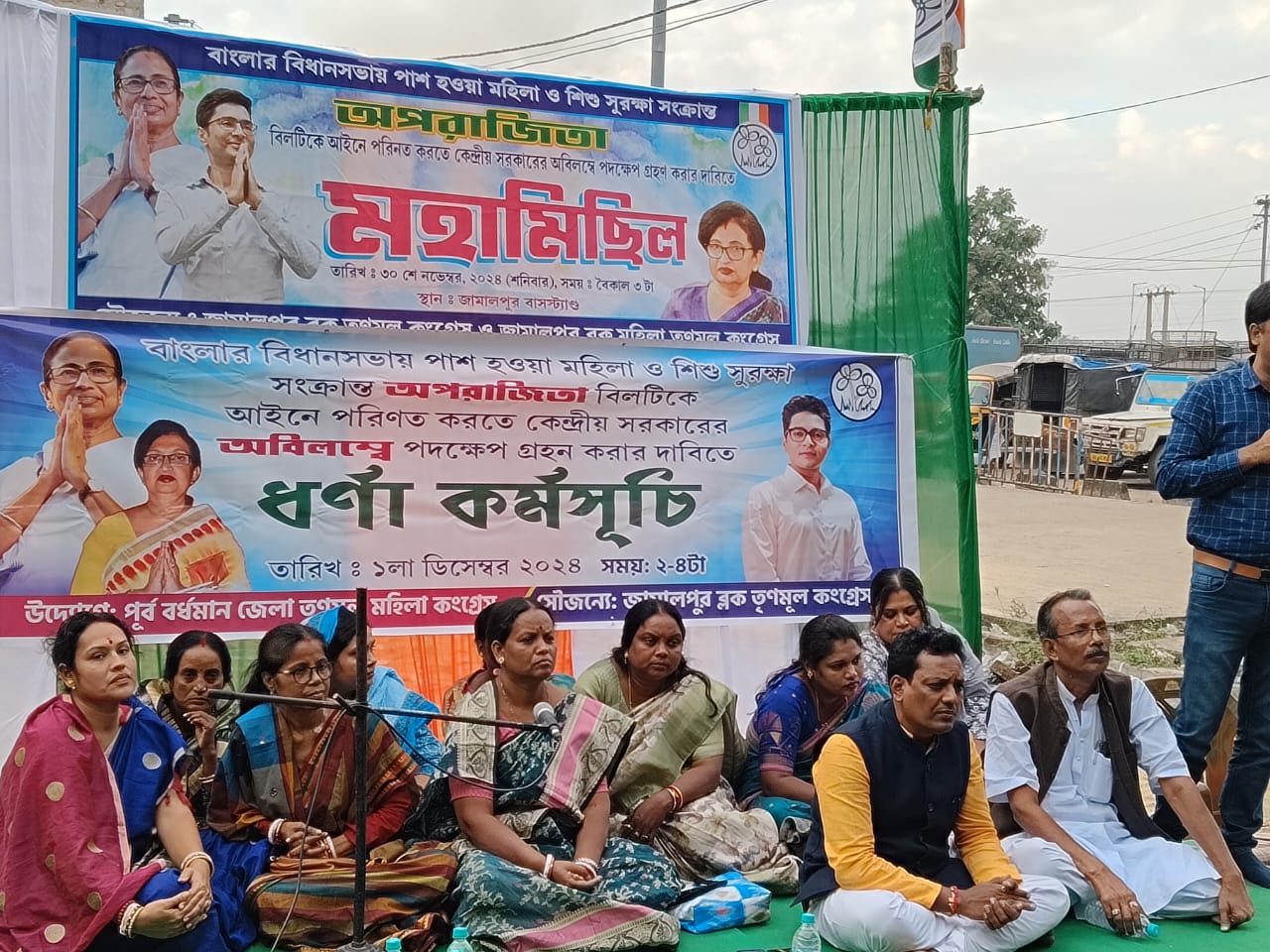 বাংলার বিধানসভায় পাস হওয়া মহিলা ও শিশু সুরক্ষা সংক্রান্ত অপরাজিতা বিলটিকে আইনে পরিণত করতে কেন্দ্রীয় সরকারের অবিলম্বে পদক্ষেপ গ্রহণ করার দাবীতে ধরনা কর্মসূচি চলছে তৃণমূলের। রাজ্যজুড়ে ব্লকে ব্লকে চলছে এই কর্মসূচি। রবিবার পূর্ব বর্ধমান জেলার জামালপুর ব্লকে জামালপুর বাসস্ট্যান্ড সংলগ্ন এলাকায় মহিলা তৃণমূলের অবস্থান বিক্ষোভ হয়।