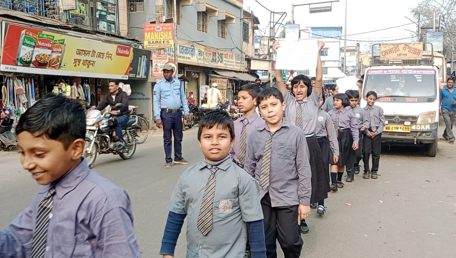 পদযাত্রা চলাকালীন বিনা হেলমেট পড়ে, এবং কানে মোবাইল নিয়ে কথা বলতে বলতে যারা বাইক চালাচ্ছিল তাদের দাঁড় করিয়ে সচেতন করা হয়। এমনকি সিট বেল্ট না লাগিয়ে গাড়ি চালকদেরও সচেতনতার বার্তা দেওয়া হয়। এদিন জ্ঞানভারতী স্কুলের ক্ষুদে বাচ্চারাও হেলমেট বিহীন বাইক চালকদের দাঁড় করিয়ে অনুরোধ করে, যে হেলমেট পড়ে গাড়ি চালান।