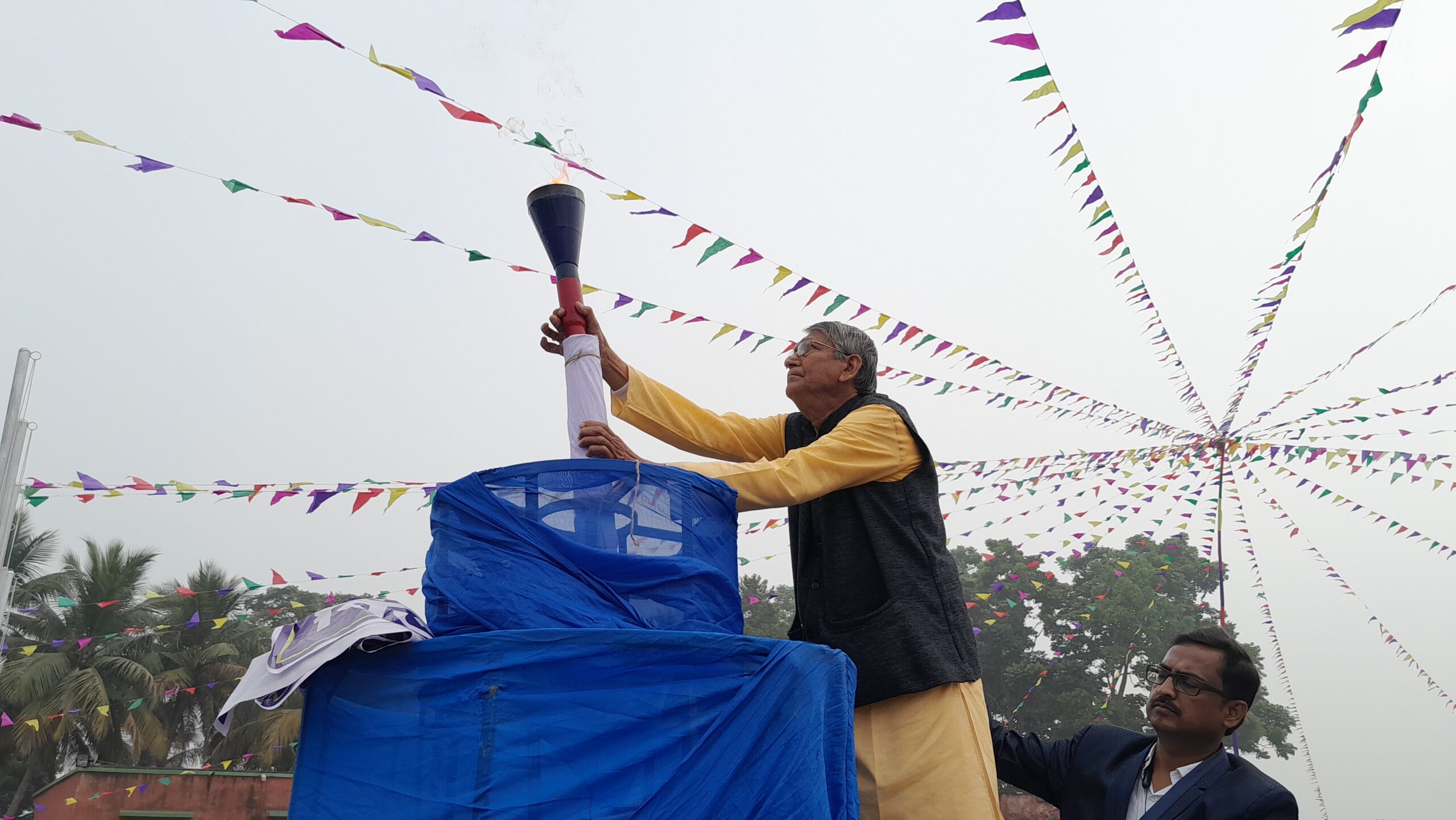 পরে মাঠে এসে মশাল তুলে দেওয়া হয় ডিপিএসসির চেয়ারম্যান তথা মেমারি বিধানসভার বিধায়ক মধুসূদন ভট্টাচার্যের হাতে। জাতীয় পতাকা উত্তোলন, জাতীয় সংগীত ও রাজ্য সংগীত পরিবেশনের ও মার্চপাস্টের মাধ্যমে সূচনা হয় খেলার ।