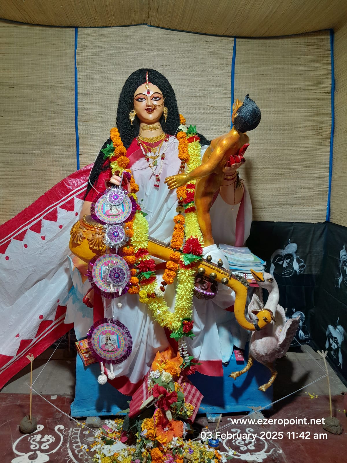এমনকি মায়ের স্নেহের আঁচল যে সমাজের সর্বত্র ছড়িয়ে থাকে সরস্বতী প্রতিমার আঁচলটি সমগ্র মণ্ডপ জুড়ে মেলে ধরে তা বুঝিয়ে দেওয়া হয়েছে। গ্রাম বাংলার পূজা কমিটির মধ্যে এই ধরনের উন্নত চিন্তা ভাবনা সত্যিই প্রশংসার যোগ্য। সবচেয়ে বড় কথা হলো, সম্পূর্ণ মণ্ডপটি পুজো কমিটির সদস্যরা নিজ হাতে করেছেন। দৃষ্টিনন্দন এই মন্ডপ এবং প্রতিমা যে দর্শকদের নজর কাড়বে তা অবশ্যই অনুমান করা যায়।