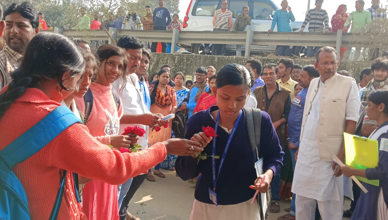 তাঁরা ছাত্র ছাত্রীদের হাতে শুভেচ্ছা জানিয়ে একটি করে গোলাপ ফুল ও পেন তুলে দেন। বিধায়ক বলেন জীবনের প্রথম পরীক্ষা যাতে ঠিক ভাবে দেয় সেই শুভেচ্ছাই জানালেন।