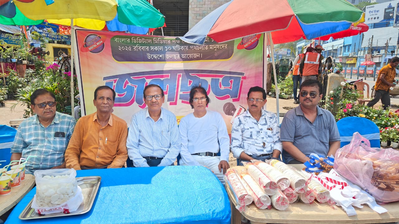 সকাল বেলা থেকেই বাংলা ডিজিটাল মিডিয়ার সকল সাংবাদিক বন্ধুরা উপস্থিত হয়ে এই জলছত্র অনুষ্ঠানে তৃষ্ণার্ত মানুষের হাতে তুলে দেন শরবত উপহার। পথ চলতি মানুষও উৎসাহের সহিত সামিল হন এই বাংলা ডিজিটাল মিডিয়ার জলছত্র কর্মসূচিতে।