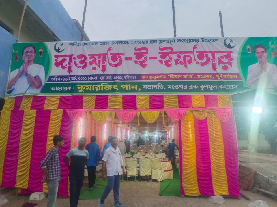 মন্তেশ্বর ব্লকের কুসুমগ্রাম কিষাণ মান্ডিতে মন্তেশ্বর ব্লক তৃণমূল কংগ্রেসের উদ্যোগে দাওয়াত -ই – ইফতার মজলিস অনুষ্ঠিত হলো রবিবার সন্ধ্যায়। প্রতি বছরে ন্যায় এ বছরও মহা সমারোহে পবিত্র রমজান মাস উপলক্ষে মন্তেশ্বর ব্লক তৃণমূল কংগ্রেসের উদ্যোগে মন্তেশ্বর পঞ্চায়েত সমিতির সভাপতি আহমদ হোসেনের তত্ত্বাবধানে দাওয়াত -ই-ইফতার পার্টির অনুষ্ঠিত হলো মন্তেশ্বরে কুসুম্গ্রাম কিষাণ মান্ডিতে । এখানে আনুমানিক ১৫০০ রোজদার মানুষের ইফতারের ব্যবস্থা করা হয়।