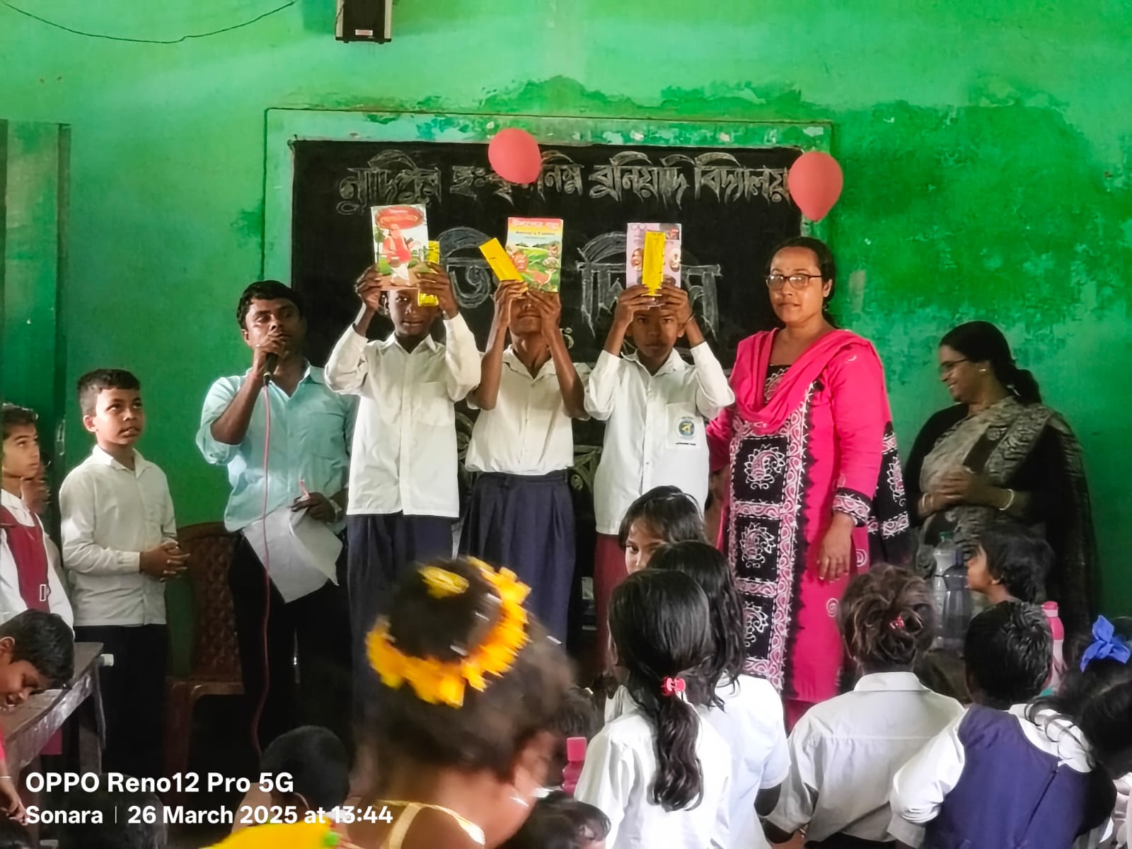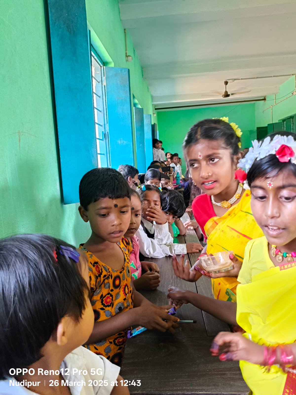 কবি জ্যোতিরিন্দ্র মৈত্রের ভাষায় সেই ঘাসের ছোট ছোট ফুলেরা রঙিন পোশাক পড়ে অনুষ্ঠান মঞ্চটিকে যখন নাচ, গান, আবৃত্তিতে ভরিয়ে তোলে তখন বিদ্যালয় প্রাঙ্গণের সামগ্রিক সাংস্কৃতিক পরিবেশটি বিশেষভাবে জমে উঠেছিল। শিক্ষার্থী আদিত্য ক্ষেত্রপাল, অন্বেষা ঘোষ, সুমাইয়া খাতুন, সৃজিত মুর্মু, নিলাশা হেমরম এদের হাসি মুখ এবং কথাবার্তাতেই অনুষ্ঠানের সমগ্র ছবিটি ফুটে উঠছিল।