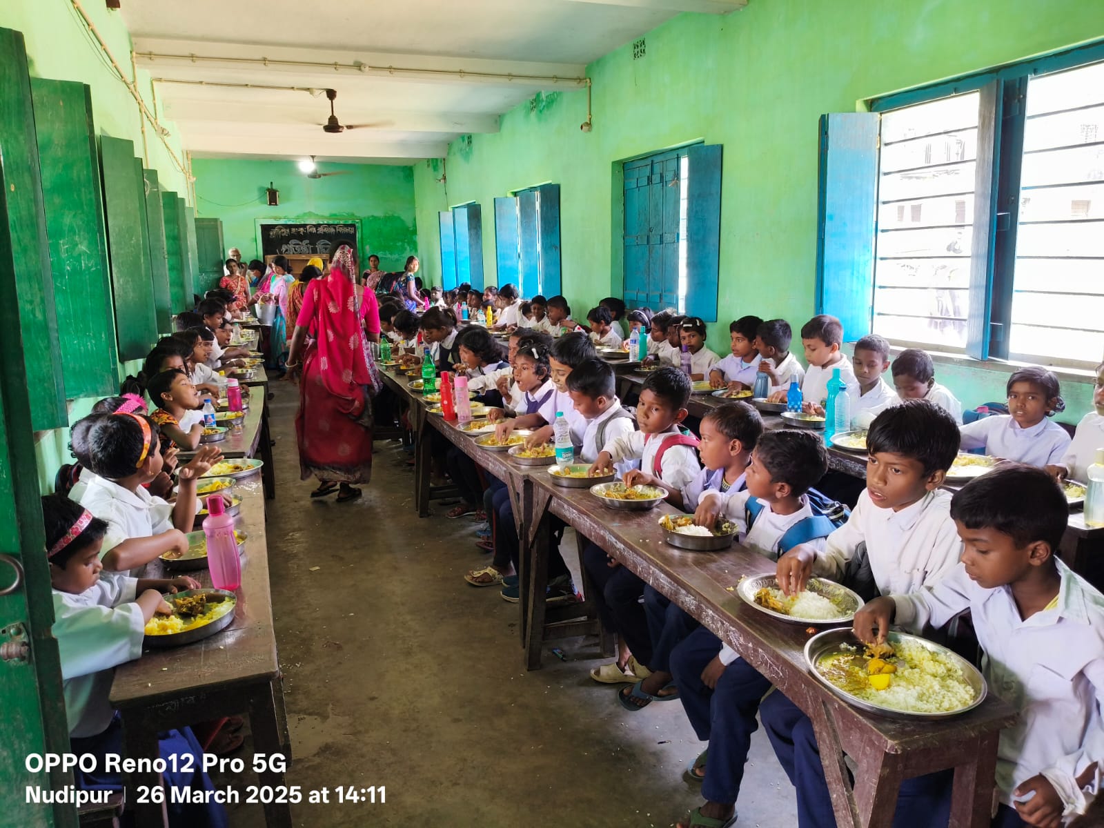 অভিজ্ঞ শিক্ষিকা স্বপ্না ব্যানার্জি জানান এই বিদ্যালয়েরসম্মান এবং ঐতিহ্যকে বজায় রাখা এবং এই পরিবেশকে এগিয়ে নিয়ে যাওয়ার দায়িত্বআমাদের সকলের। অনুষ্ঠান শেষে মধ্যাহ্ন ভোজনে নিত্যদিনের ভাতের সাথে বিদ্যালয়ের সকল শিক্ষক শিক্ষিকার আর্থিক সহযোগিতায় শিক্ষার্থীদের পাতে আলুর দম, মাংস, চাটনি এবং ল্যাংচার আয়োজন সকলের মুখে হাসি ফোটায়।