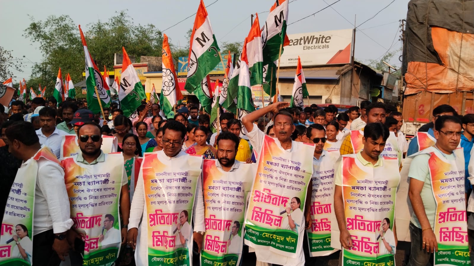 জীবনদায়ী ওষুধের লাগাম ছাড়া মূল্য বৃদ্ধি এবং নিত্য প্রয়োজনীয় জিনিসের মূল্যবৃদ্ধির প্রতিবাদে দলনেত্রী তথা মুখ্যমন্ত্রী মমতা বন্দ্যোপাধ্যায়ের নির্দেশে শুক্রবার জামালপুরে ৬ টি অঞ্চল নিয়ে একটি প্রতিবাদ মিছিল করা হয়। মিছিলটি চৌবেরিয়া পার্টি অফিস থেকে শুরু হয়ে ভেরিলিপুলে শেষ হয়। মিছিলে প্রায় ৫০০০ কর্মী সমর্থক পা মেলান। উপস্থিত ছিলেন বিধায়ক অলক কুমার মাঝি, ব্লক সভাপতি মেহেমুদ খান, পঞ্চায়েত সমিতির সভাপতি পূর্ণিমা মালিক, সহ সভাপতি ভূতনাথ মালিক সহ সকল শাখা সংগঠনের সভাপতি, অঞ্চল সভাপতি সহ অন্যান্যরা।