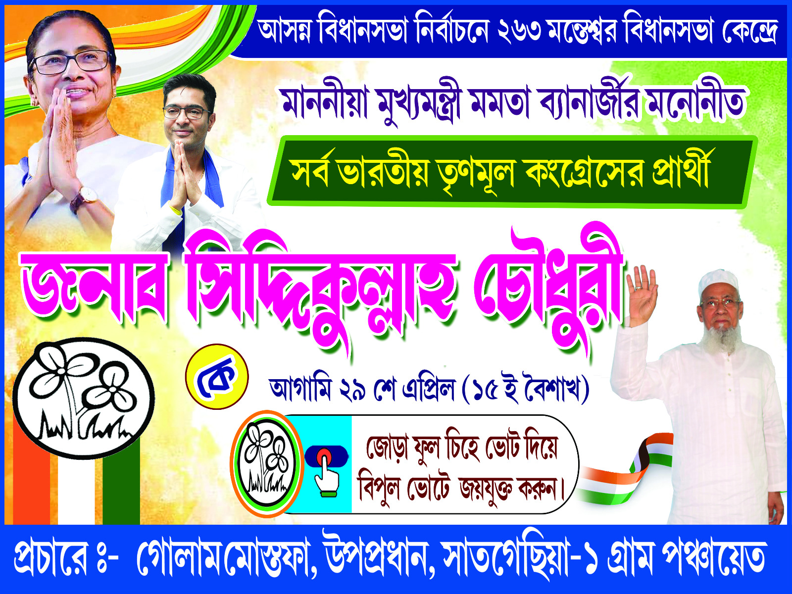 পূর্ব বর্ধমান জেলার সাতগেছিয়ায় প্রাথমিক শিক্ষক সংগঠনের পক্ষ থেকে নির্বাচনকে সামনে রেখে একটি প্রস্তুতি বৈঠক অনুষ্ঠিত হলো সাতগেছিয়া দলীয় কার্যালয়ে । তৃণমূলকংগ্রেসের দলীয় কার্যালয়ে মন্তেশ্বর বিধানসভার তৃণমূল কংগ্রেসের মনোনীত প্রার্থী সিদ্দিকুল্লা চৌধুরী সমর্থনে এই বৈঠক বলে জানালেন সংগঠনের নেতৃত্বরা। সংগঠনের নেতৃত্বরা উপস্থিত ছিলেন। আসন্ন বিধানসভা নির্বাচনে মন্তেশ্বর বিধানসভার তৃণমূল কংগ্রেসের প্রার্থী সিদ্দিকুল্লা চৌধুরীকে জয়যুক্ত করার জন্য তারা প্রচার শুরু করবেন এবং সভা অনুষ্ঠিত করবেন বলে জানালেন।কিভাবে তারা এই কার্যক্রম চালাবেন সে বিষয়ে সিদ্ধান্ত এবং পরিকল্পনা করেন সংগঠনের নেতৃত্বরা ।