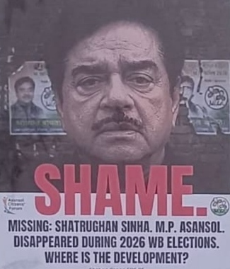 বিধানসভা নির্বাচনের আবহে তৃণমূল সাংসদ শত্রুঘ্ন সিনহাকে লক্ষ্য করে বিতর্কিত পোস্টার ঘিরে আসানসোল শিল্পাঞ্চলে রাজনৈতিক শোরগোল শুরু হয়েছে। নির্বাচনের ঠিক মুখে এই ধরণের ‘নিখোঁজ’ পোস্টারকে কেন্দ্র করে শাসক ও বিরোধী শিবিরের মধ্যে দড়ি টানাটানি এখন তুঙ্গে।